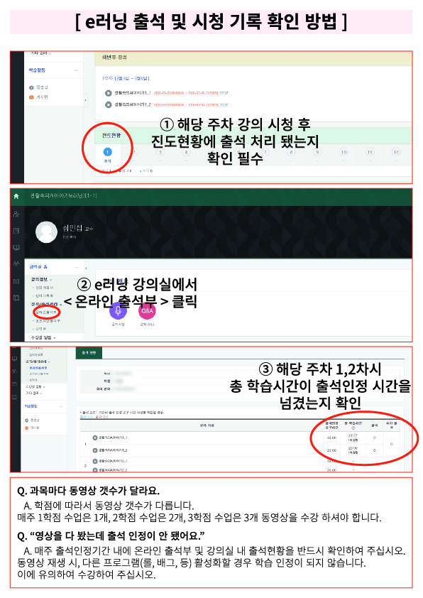 [학생용] e-러닝 시청 및 출석 확인 방법